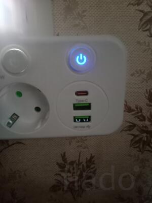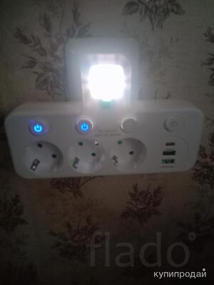 Продам новую розетку накладную четырехместную открытой установки с заземлением, с подсветкой 5Вт, 2 стандартных и type C USB разъёмами.